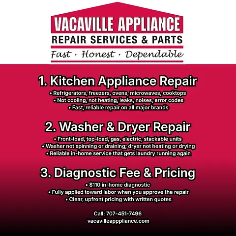 Why Choose Vacaville Appliance?Fair, Upfront PricingWe Work With All Major BrandsRepairs For Every Home